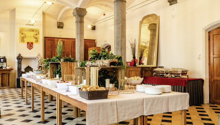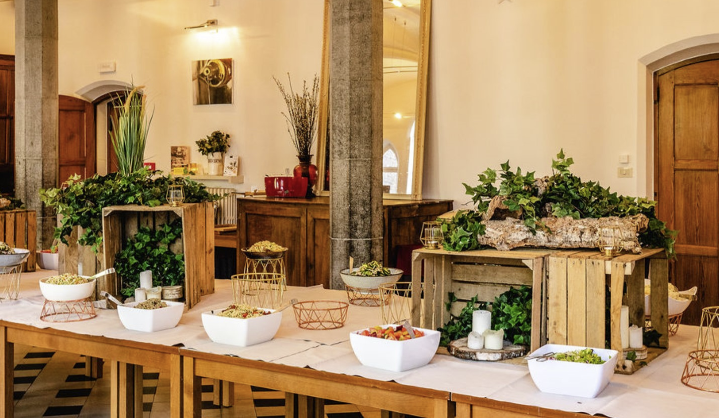 Lunchen of dineren in een prestigieus kader Bent u op zoek naar een unieke locatie om te dineren in een prestigieus kader met uw familie/ vrienden/ collega's/ ... ? Dan kan dit in één van onze zalen.Hotel Monasterium PoortAckere beschikt over drie zalen waar u kan genieten van een heerlijke lunch of diner voor groepen vanaf 16 personen. Wij vragen u vriendelijk om bij voorkeur één menu per tafel te kiezen. Een vegetarisch menu is mogelijk indien u ons dat minstens 2 dagen op voorhand laat weten. Reservering verplicht. Een aperitief is ook mogelijk in onze kloostertuin.